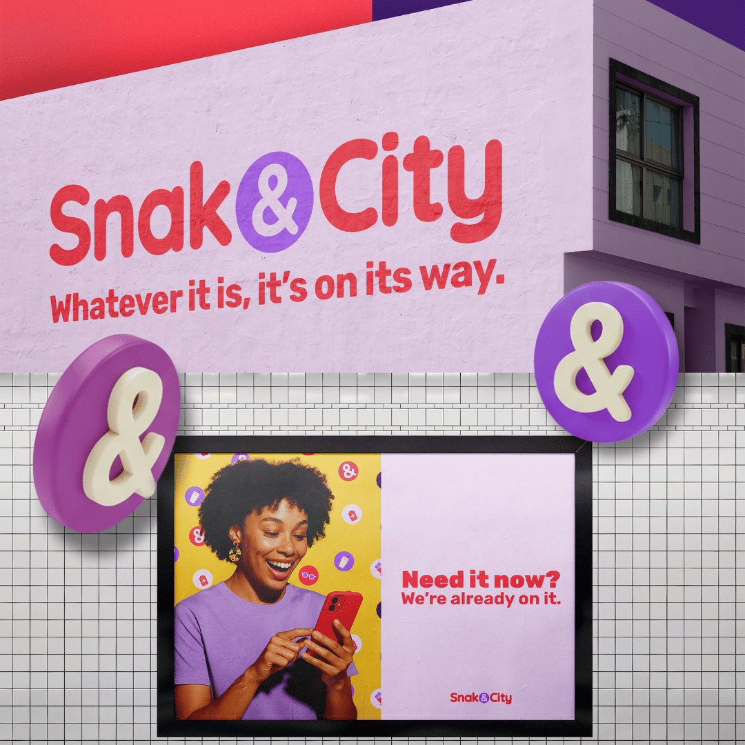 Snak & City needed a bold and energetic brand identity that reflects its fast, fresh, and city-driven delivery service. Our objective was to build a friendly and memorable visual system centered around playful forms, vibrant colors, and a distinctive ampersand symbol. The identity communicates convenience, speed, and a fun approach to everyday deliveries.
